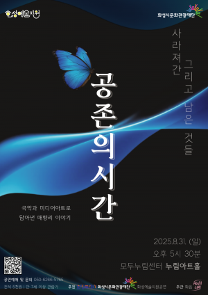 오는2025년8월31일(일)오후5시30분,경기도 화성시 모두누림센터 누림아트홀에서국악단체‘화음’이 특별 공연‘공존의 시간II-사라져간,그리고 남은 것들’을 개최한다.이번 공연은 …